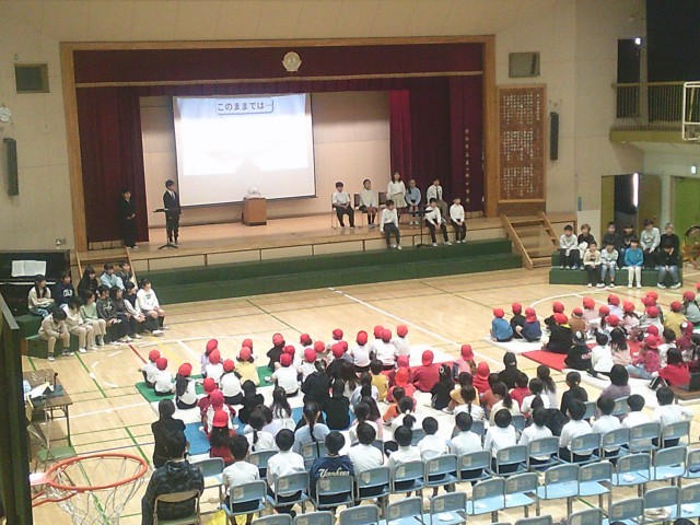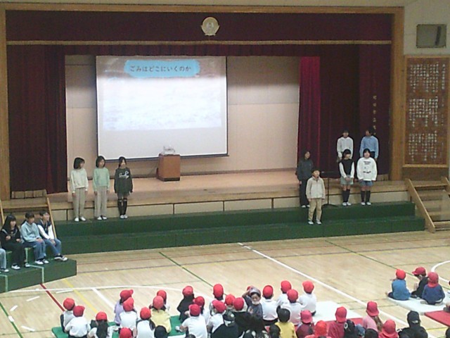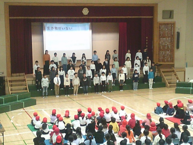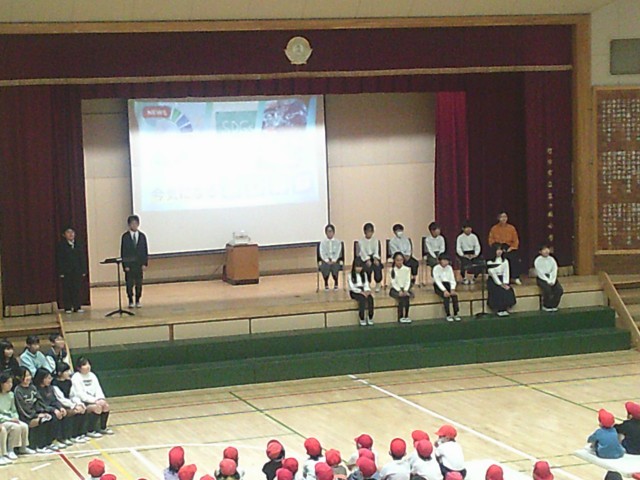 21日(金)午前中、学習発表会を開催しました。初日は児童鑑賞日です。2年生の次は4年生が登場しました。「はじめの言葉」の中に2年生が「SDGsって何だろう」「4年生が教えてくれるよ」とあったので、それに応えるかのように分かりやすく発表していました。子どもたちは「そうなんだ」「なるほど」とうなずきならが聞いていました。