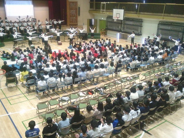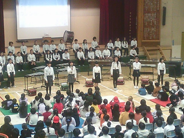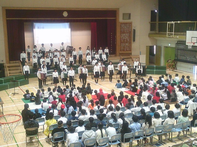 21日(金)学習発表会児童鑑賞日の様子です。トイレ休憩や水飲み休憩をしてから、後半に入りました。5年生からスタートです。アナウンスをする機会が多くあり、子どもたちはマイクを手に、堂々と述べていました。最後は体育館内に手拍子が広がりました。