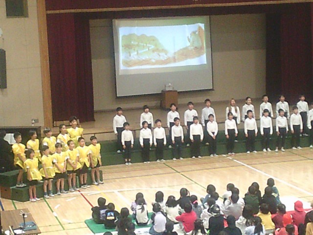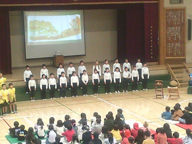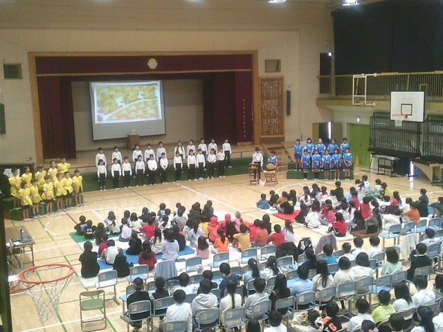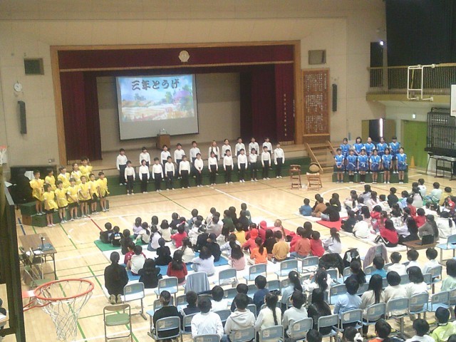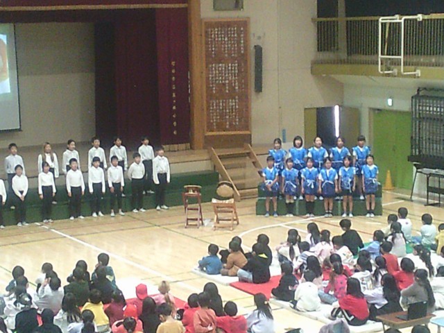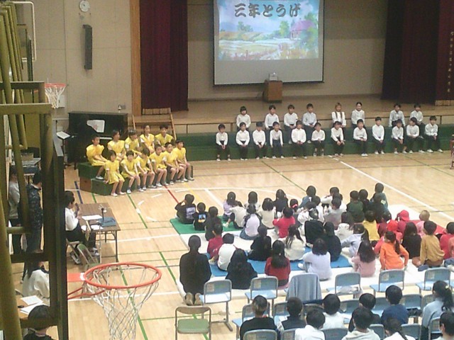 21日(金)学習発表会児童鑑賞日の様子です。5年生の次は、3年生の発表でした。音読劇「三年とうげ」を披露しました。息の合った音読、元気な歌声が会場中に響き渡りました。