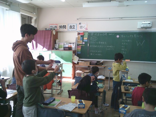 28日(金)1・2時間目、3年1組は理科の時間でした。今回から「音」の学習が始まりました。子どもたちは実験キットを使って学習します。第1回目は「音のふしぎを感じよう」をめあてに、音が出ているときのことを話し合ったり、紙笛にチャレンジしたりしました。