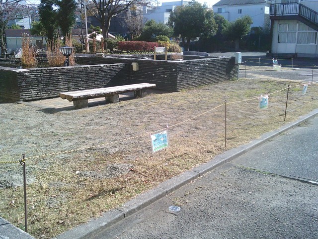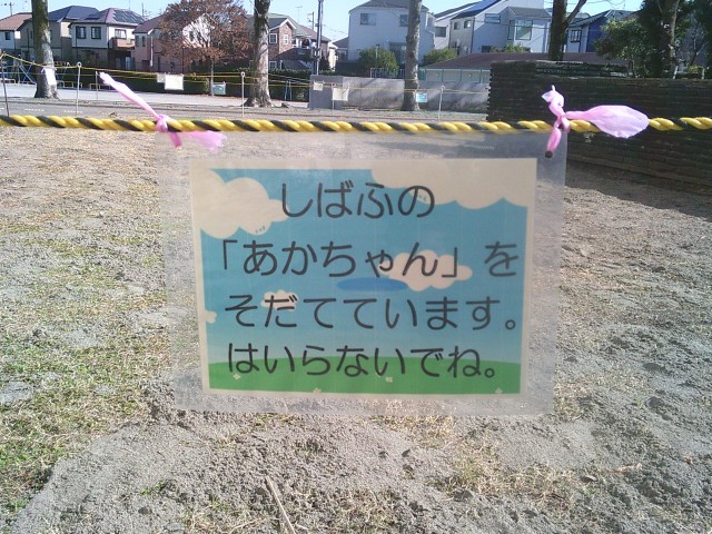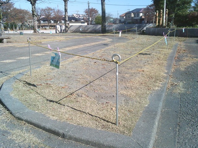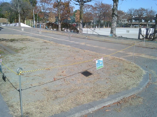 上校庭では芝生の養生が始まりました。3区画に杭とロープを張り、表示を付けています。約4週間この状態が続きますので、ご承知おきください。