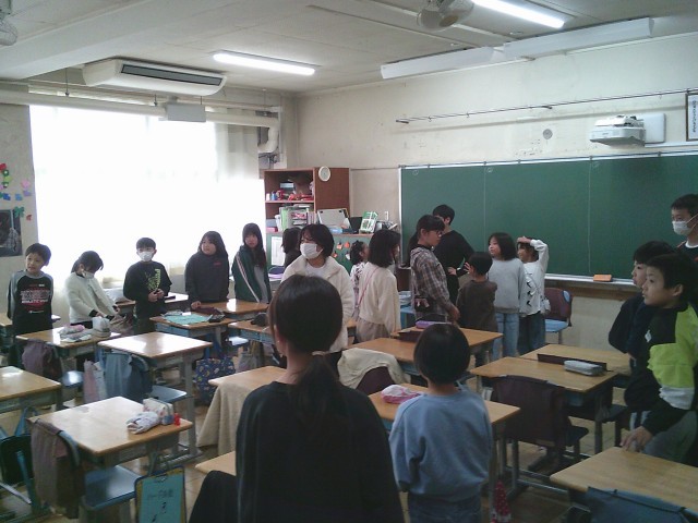 2日(火)、たてわり班集会の様子です。この時は、掃除をなしにして30分間、異学年で遊びます。体育館に2グループ、校庭に4グループ、教室で6グループが過ごします。遊び場のローテーションは、特別活動担当の先生たちが決めています。今回は天候にも恵まれ、すべてのグループが計画通りに進めることができました。写真は全2組の様子です。2組は7班から12班まであります。チャイムが鳴り、自分の教室に戻る子どもたちにはたくさんの笑顔がありました。