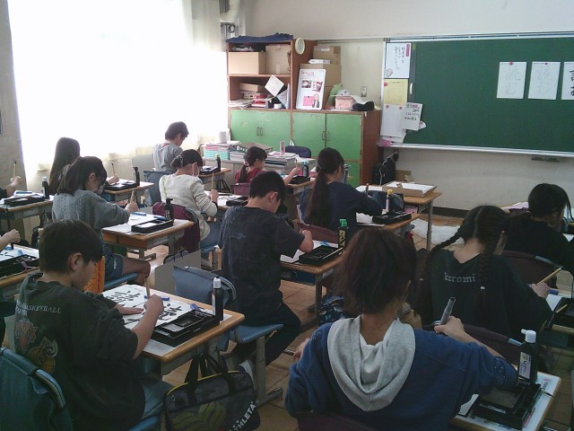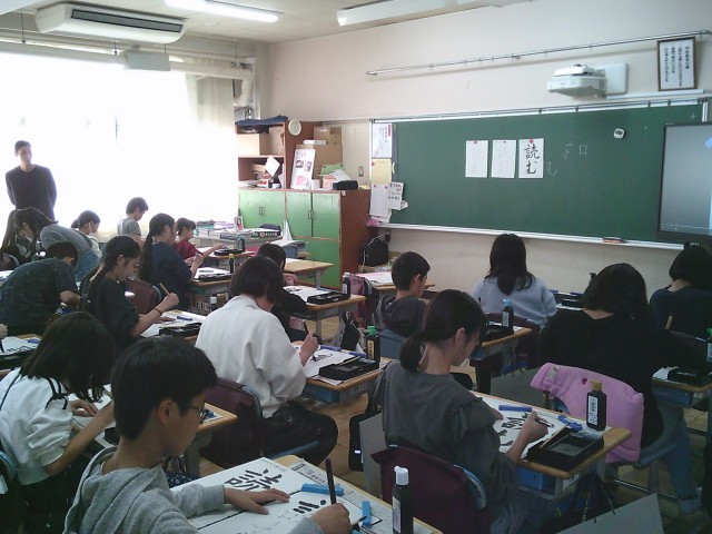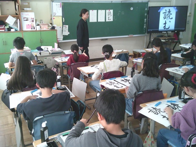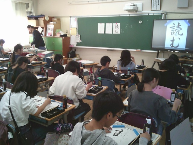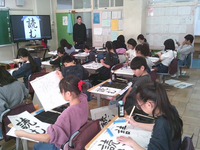 2日(火)5時間目、5年1組は書写の時間でした。「読む」の二文字を練習しました。子どもたちは「読」が大きくならないようにしたり、「む」の曲がるところに気を付けたりしながら筆を動かしていました。