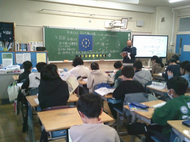 3日(水)1・2時間目、6年2組は理科の時間でした。今回は理科室ではなく、教室で「月の見え方と太陽」の単元を学習しました。子どもたちは「月の見え方は、月や太陽の位置とどのような関係があるのだろう」をめあてに考えました。