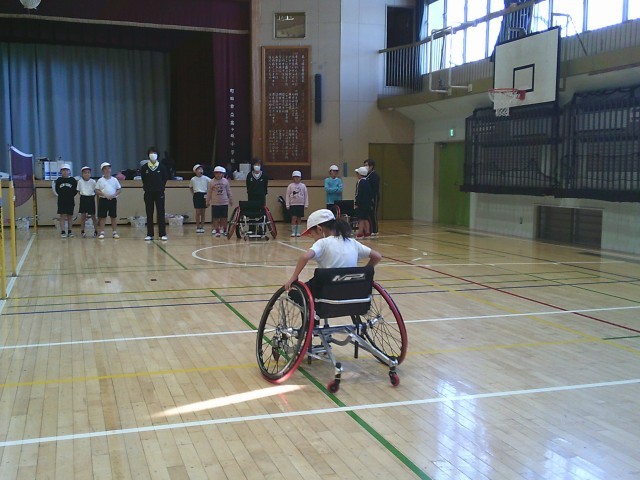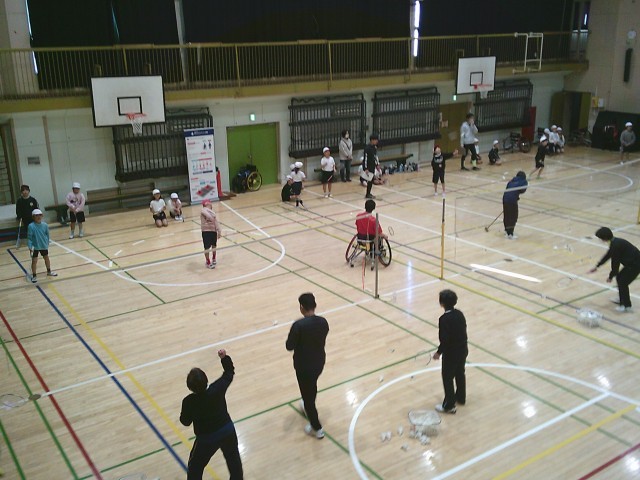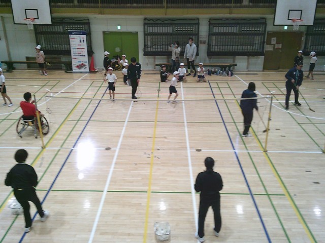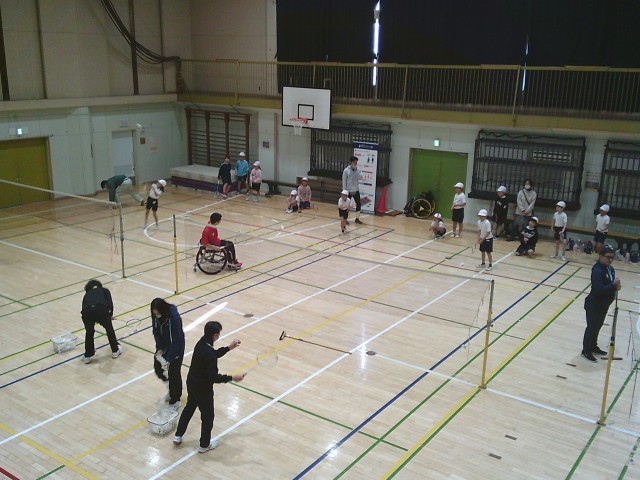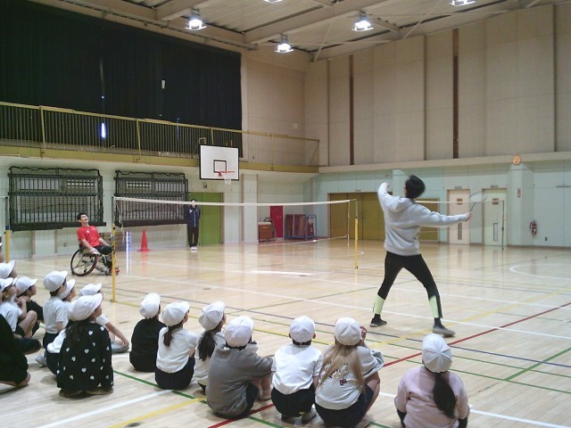 4日(木)1・2時間目、3年1組のパラバドミントン体験の様子です。スポーツ用車いすの体験後、5分休憩をとりました。休憩後、選手と担任の先生がバドミントンをしました。ラリーが続き、子どもたちからは歓声が上がりました。後半は、実際にバドミントンの体験をしました。町田市バドミントン連盟の皆さまのご協力により、シャトルを一人5回ずつ打つ練習を時間の許す限り行いました。子どもたちの中には、今回初めてバドミントンをした人もいます。そのため最初は空振りをしていましたが、繰り返すうちに打ち返せるようになってきました。