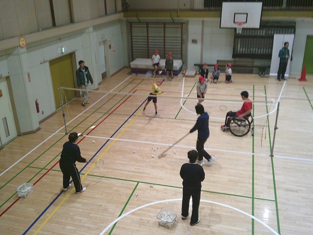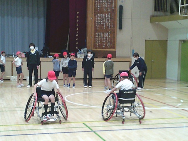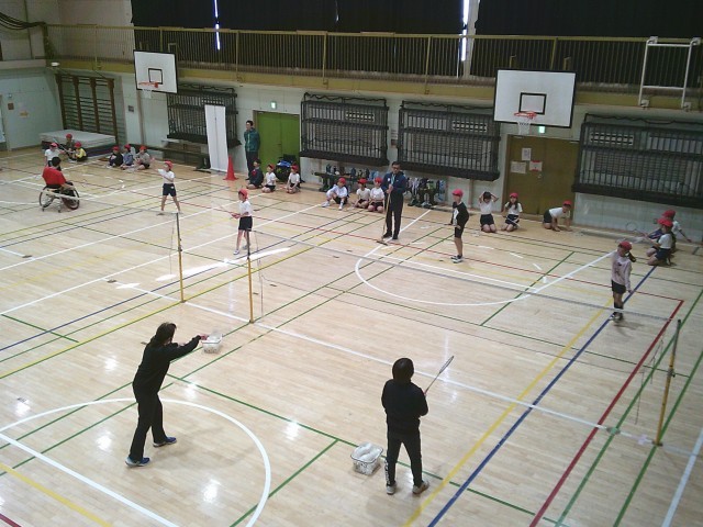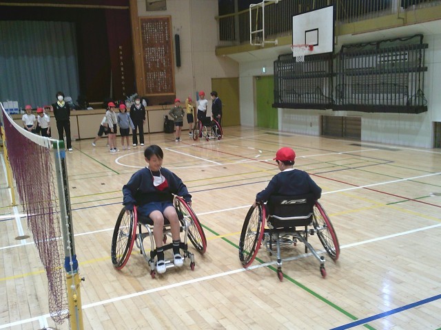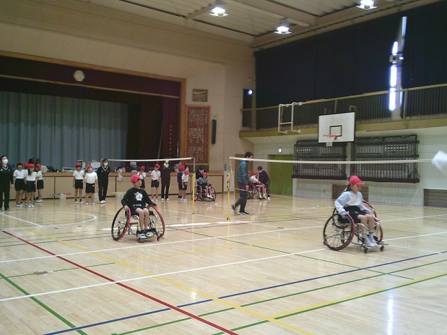 4日(木)3・4時間目、3年2組はパラバドミントン体験をしました。本校では毎年3年生を対象に体験をさせてもらっています。スポーツ振興課との連絡調整はボランティアコーディネーターにお世話になっています。いつもありがとうございます。スポーツ用車いすの体験を終えた子どもたちは一人1本ラケットを借りて、バトミントンをしました。バドミントン連盟の皆さんに次々にシャトルを打っていただき、子どもたちは5回で次の人と交代しました。最初は1回も打ち返せなかった人も少しずつ返すことができるようになりました。バドミントンの楽しさを感じることができたようです。今回の体験を通して、障がいのある方もスポーツを楽しむことができること、そのために周囲の人のサポートが必要であることなど、多くの学びがありました。