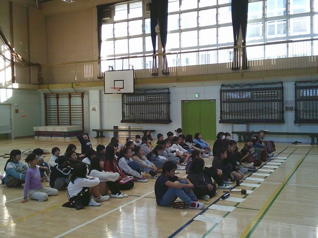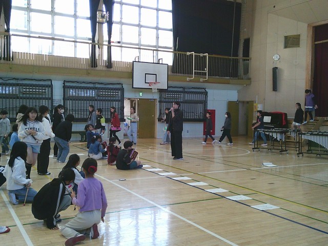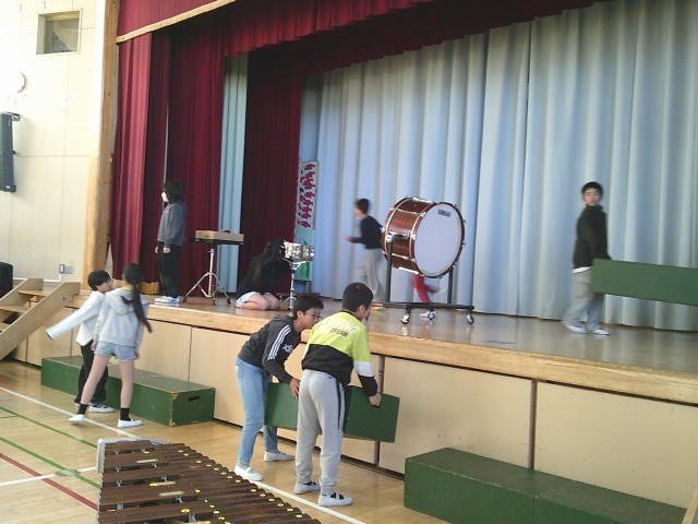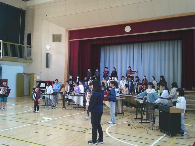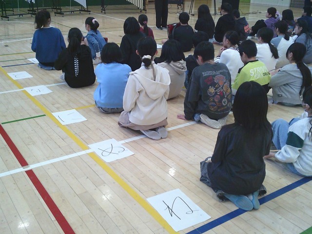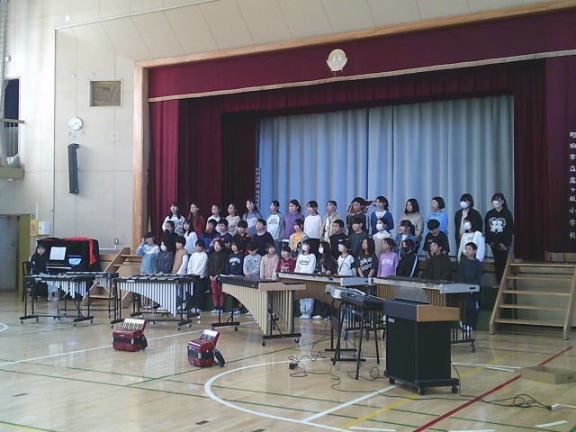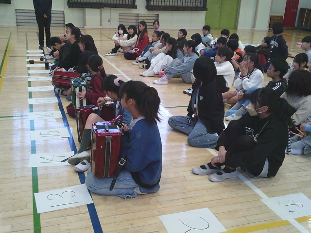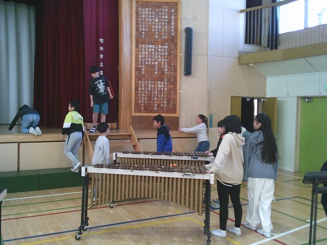 4日(木)6時間目、5年生は合同で音楽の時間でした。来週に迫った「連合音楽会」の練習をしました。最初にひな壇を出したり、楽器を並べたりしました。次に、市民ホールでの座席を決めました。アコーディオンなど自分で楽器を持って入場する人が前、ついで、合唱の並び順で座ります。子どもたちは自分の席の「ひらがなと数字」を覚えました。実際に入場、合唱、合奏、退場までを練習しました。次回は9日(火)に本番前最後の練習をする予定です。本校は3日間開催する中日(10日)の午後に出演します。本校を含め7校の子どもたちが集まるため座席に余裕はありません。保護者の皆さまのご入場はできませんのでご理解のほど、お願いします。