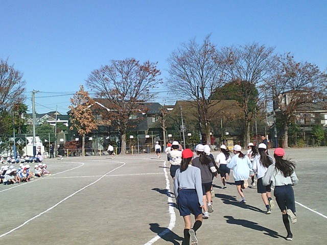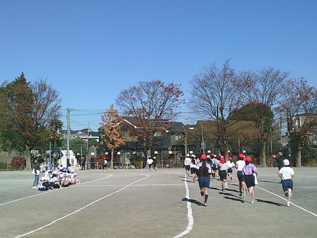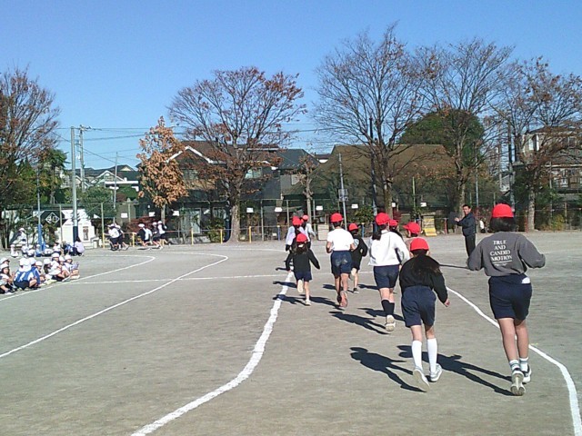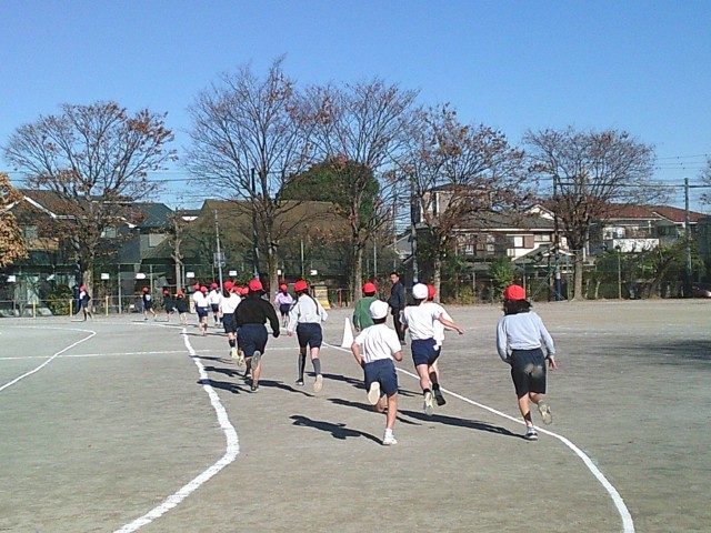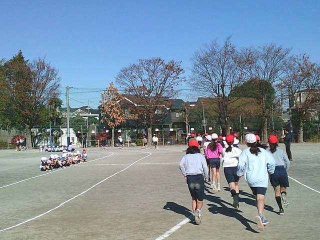 5日(金)2年生と5年生による持久走大会の様子です。後半は5年生が6分間走りました。昨年よりも2分長く走るのでペース配分が難しいですが、自分の目標に向かって走る姿がありました。2年生はすすんで応援することができました。