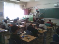 5日(金)、3年生はこれまで育ててきたダイコンの収穫をしました。土を落としてから2階プレイルームに並べておきました。昼休みに「みんなの食堂」運営委員の方お二人にお越しいただき、収穫したダイコンの一部をプレゼントしました。その後、担任の先生から、持参したビニール袋にダイコンを入れてもらいました。収穫したばかりの瑞々しいダイコンをご家族皆さんで召し上がってください。