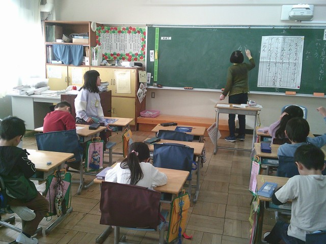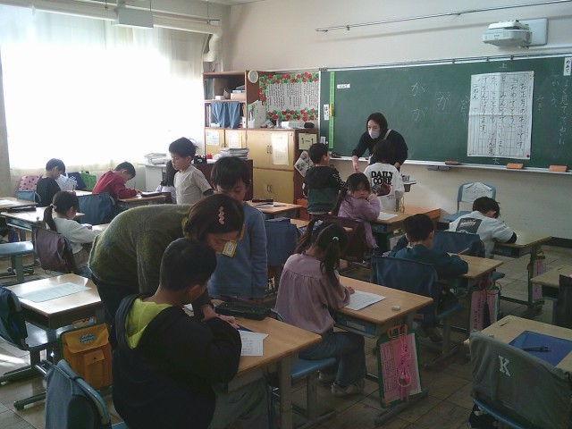 10日(水)1時間目、1年1組は書写の時間でした。「書き初め」の練習が始まっています。お手本をよく見て書くことをめあてに、練習をしました。練習用紙を1枚書いて提出することになっていましたが、中には2枚目にチャレンジする人もいました。