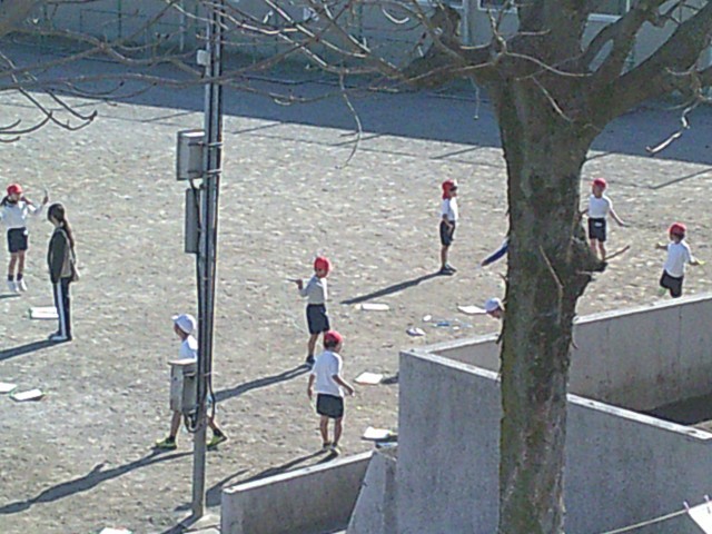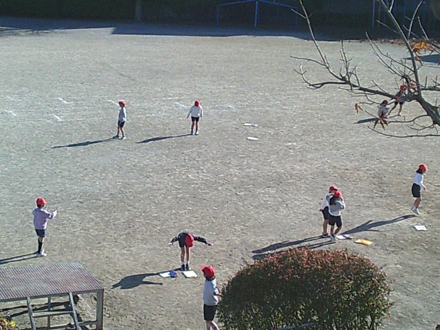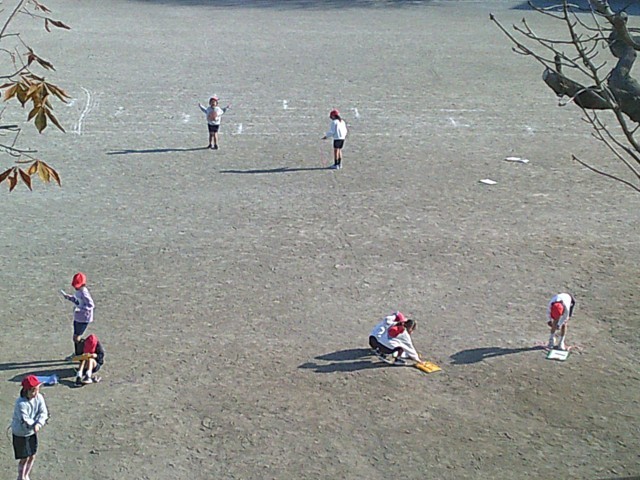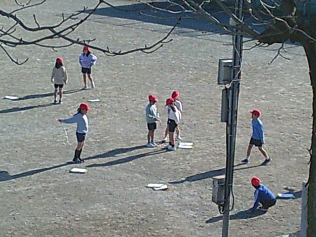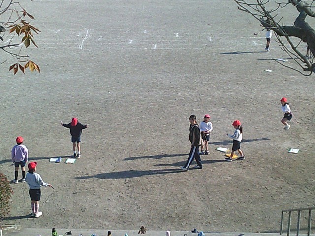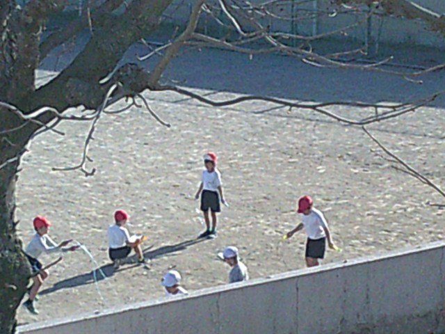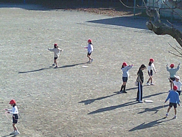 10日(水)2時間目、2年2組は体育の時間でした。準備運動後、前半は「なわとび」の練習をしました。ペアの相手に数えてもらったり、跳び方を知っている友達に教えてもらったりする姿がありました。写真は専科棟2階のベランダから撮っています。