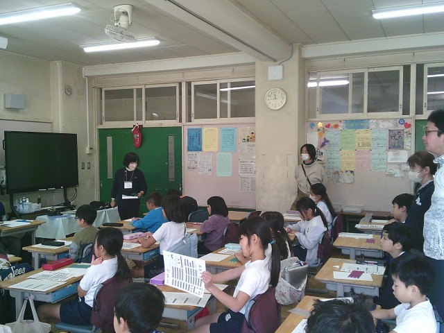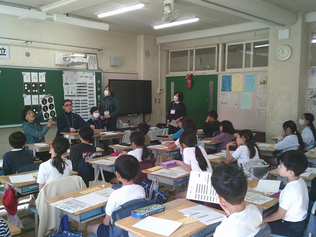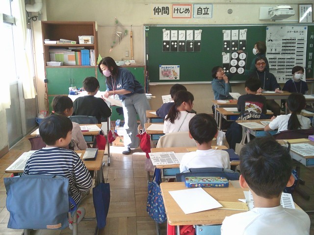 10日(水)4時間目、3年2組は「点字体験」をしました。総合的な学習の時間として「バリアフリーについて知ろう」に取り組んでいます。これまで、盲導犬ユーザーの方のお話を聞いたり、アイマスク体験をしたりしてきました。今回は、点字をどのように打つのか、その歴史や仕組みから教えてもらいました。点を打つ小さな窓には6つの穴があり、それに1番から6番まで番号を付け、その番号の組み合わせで文字が分かることを理解しました。子どもたちはその後、夢中になって点字に取り組んでいました。