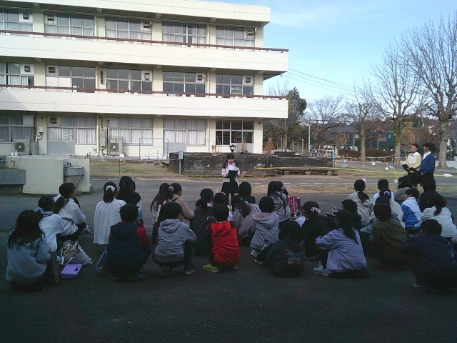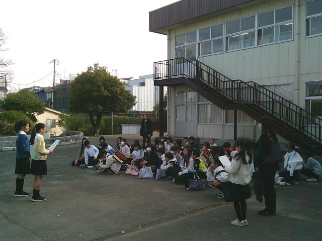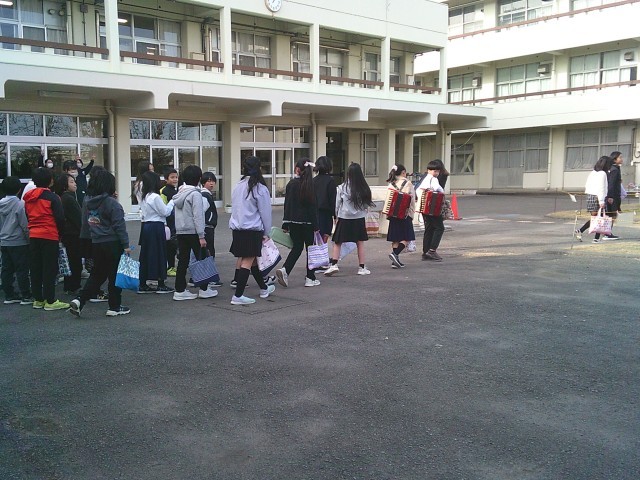 10日(水)午後12時45分、5年生は連合音楽会に向かうため上校庭で出発式をしました。5年生だけ給食を早めに出してもらい、食事後衣装に着替えて集合しました。出発式の司会進行や代表の言葉は1組が担当しました。こがとものスタッフの皆さまにも見送られ、学校を出発しました。