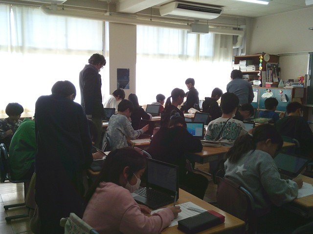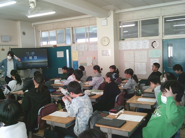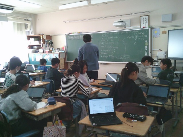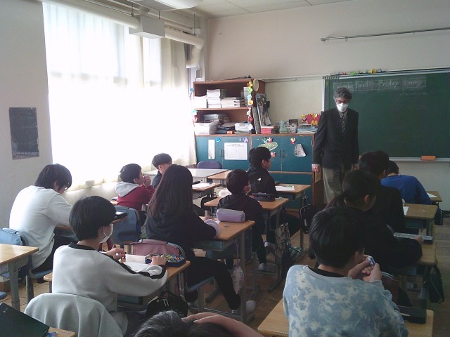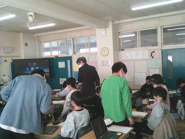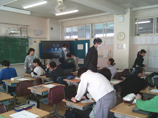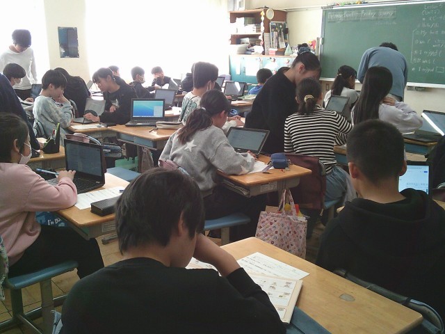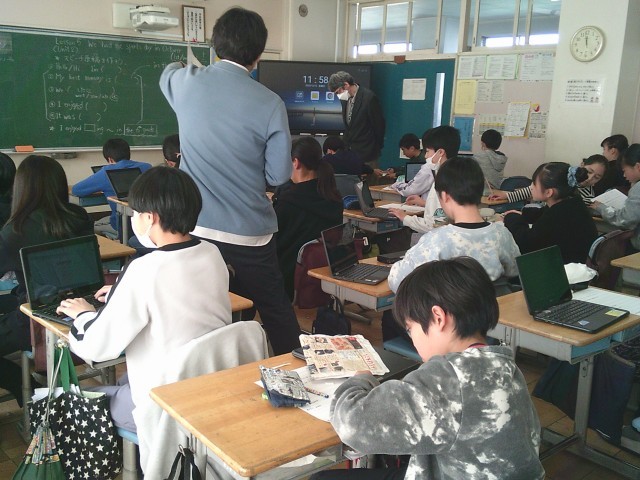 12日(金)4時間目、6年1組は外国語の時間でした。「思い出を伝えよう」の学習です。今回は、英語でのスピーチ原稿作りをしました。先生から「原稿に入れる項目は4つ」と説明があり、子どもたちはまず15分間取り組みました。この間、友達に聞いたり、タブレット端末で表現を探したりしました。項番2の「一番の思い出」には「日光林間学校」と書いている人が多かったです。