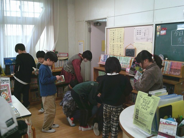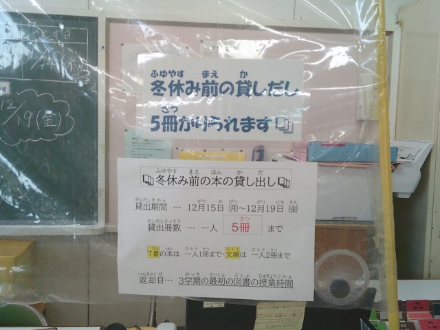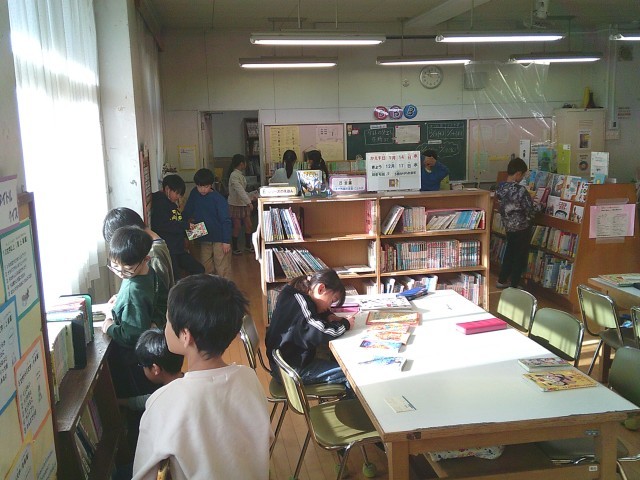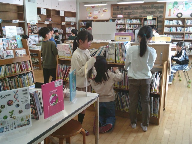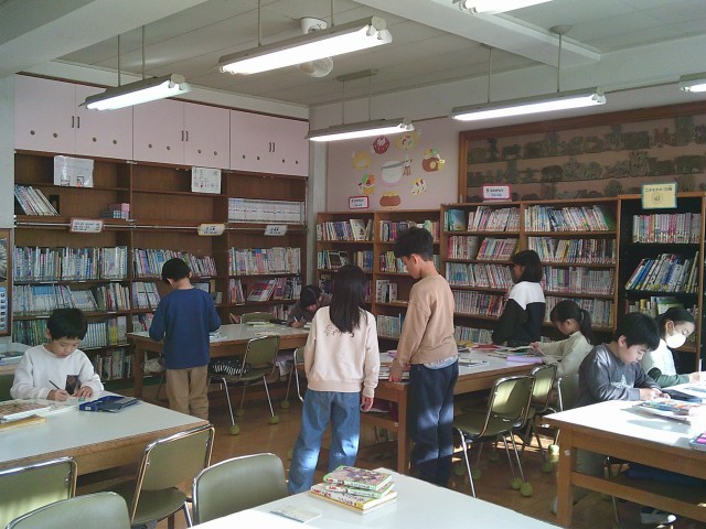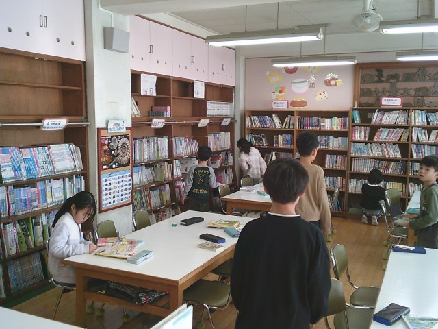 17日(水)2時間目、3年2組は図書の時間でした。15日(月)から冬休み用の本の貸出が始まり、一人5冊まで借りることができます。子どもたちは何を借りようかと本棚を見て歩いたり、友達のお勧めを聞いたりしていました。5冊選び終えた人はカードに必要事項を書いて手続きをしてもらいました。