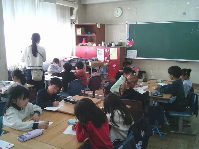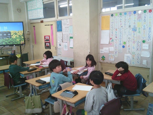 17日(水)3時間目、2年2組は生活の時間でした。18日に行う「1年2組とあそぼう!」に向けて、たてわり班ごとに話し合いをしました。2組グループもパッチンガエルの作り方を1年生に教えて一緒に遊ぶ予定です。