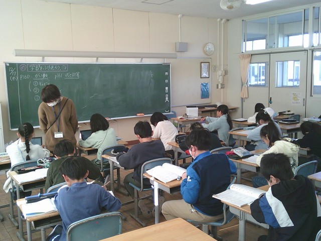 17日(水)4時間目、4年生は算数の時間でした。2学期の学習の振り返りをしています。3クラスに分かれ、教科書にある単元ごとの問題やプリント問題、ドリルソフトに取り組んでいます。