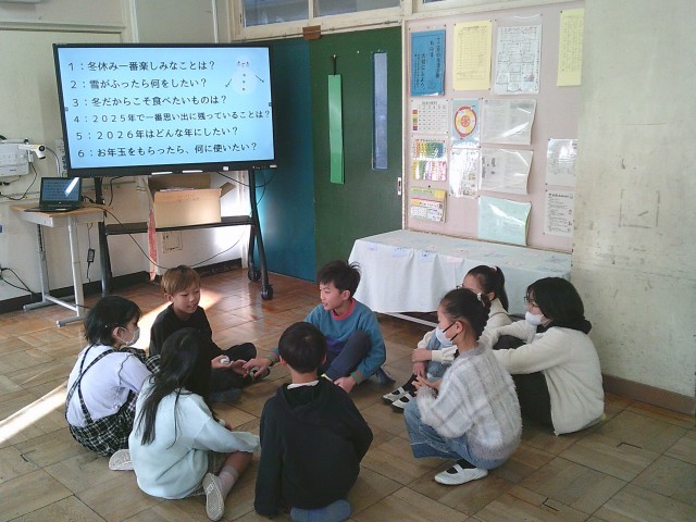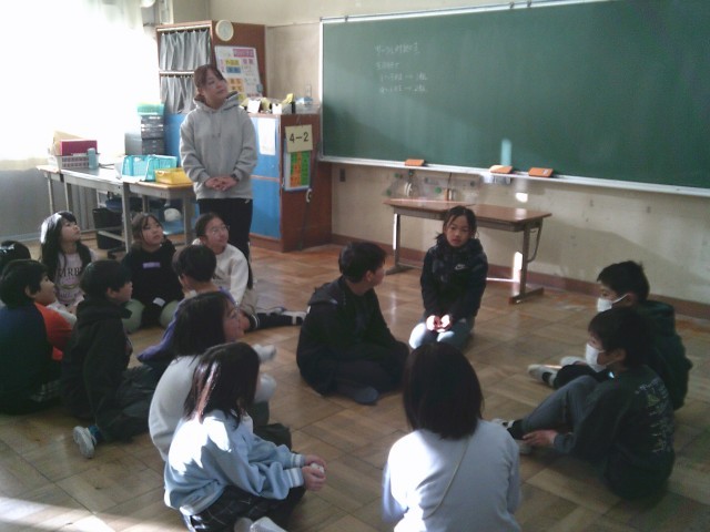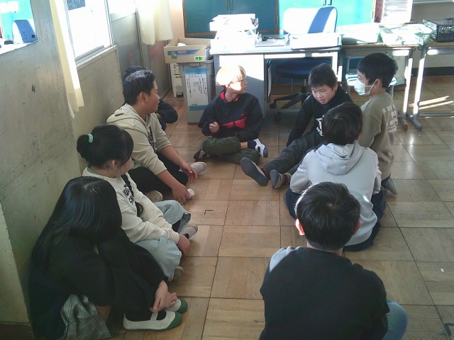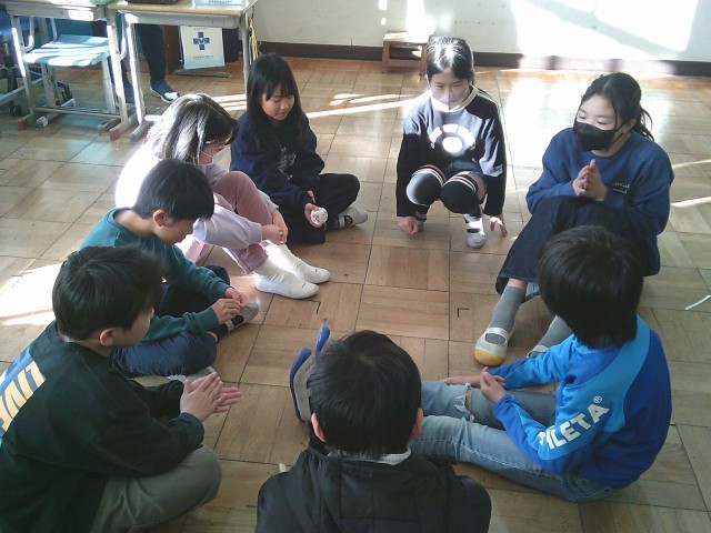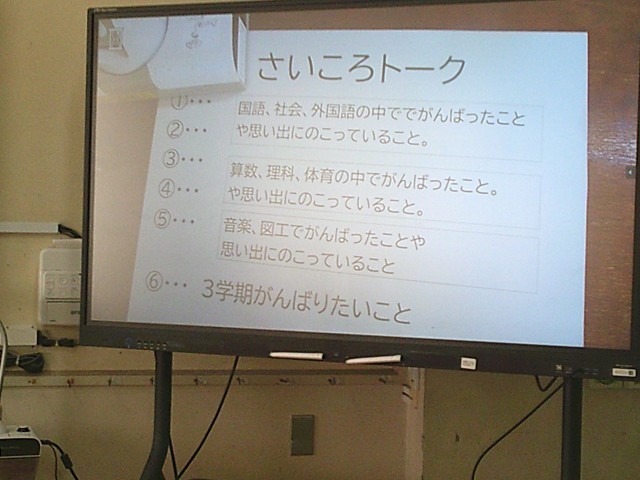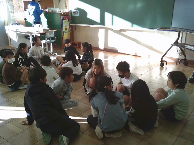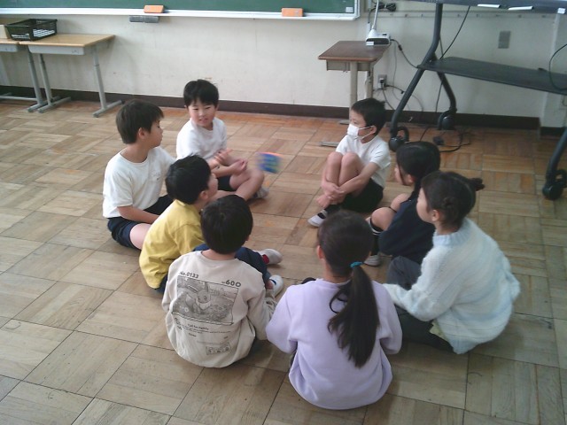 18日(木)の高ヶ坂タイムは、月1回のサークル対話でした。学級単位、あるいは学年単位でいくつかのグループを作り、テーマに基づいて自分の話をしたり、相手の話を聞いたりします。会話のキャッチボールができるようにすることもねらいの一つです。3年生も4年生も学年内の1組と2組がグループを作って、「サイコロトーク」をしました。出た目のテーマに沿って、自分の話をしていきます。「そうなんだね」「私も同じ」など相槌を打つ姿もありました。