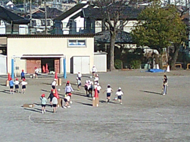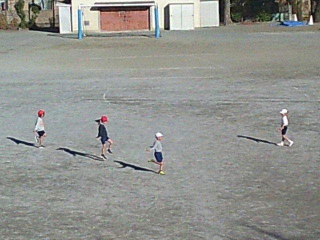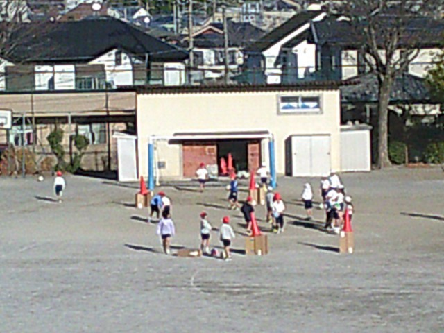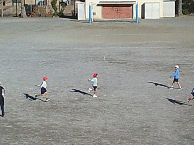 18日(木)5時間目、2年2組は体育の時間でした。前半はなわとびの練習をしました。その中で、なわとびをしながら走る練習もしました。後半はボールけりあそびをしました。一人1個のボールを使い、的をめがけて「エイッ」とボールを蹴っていました。