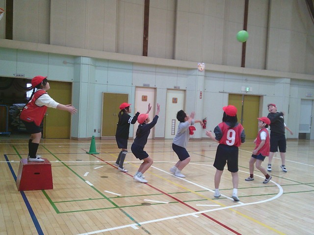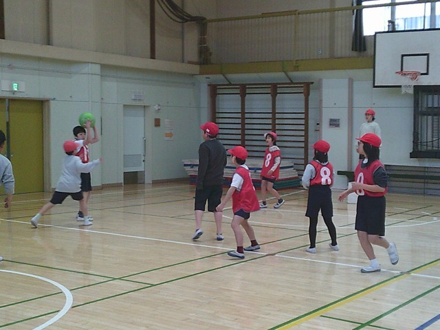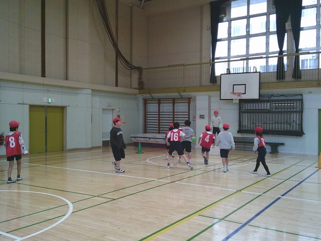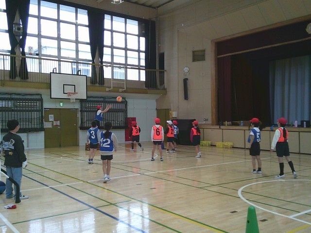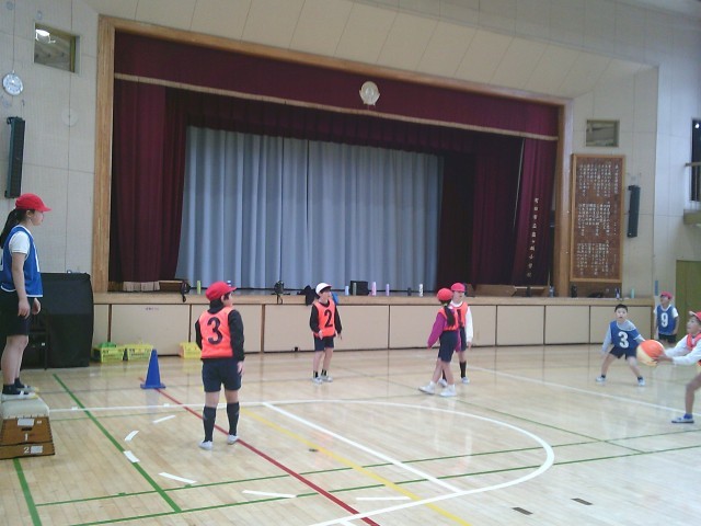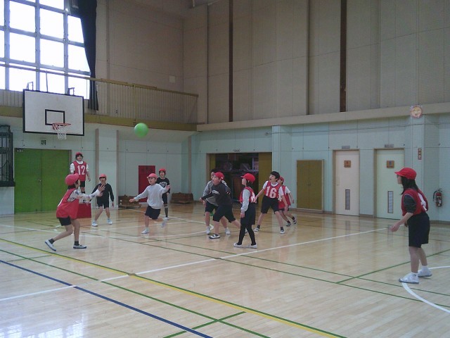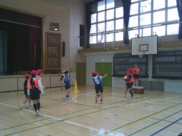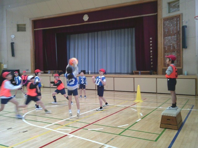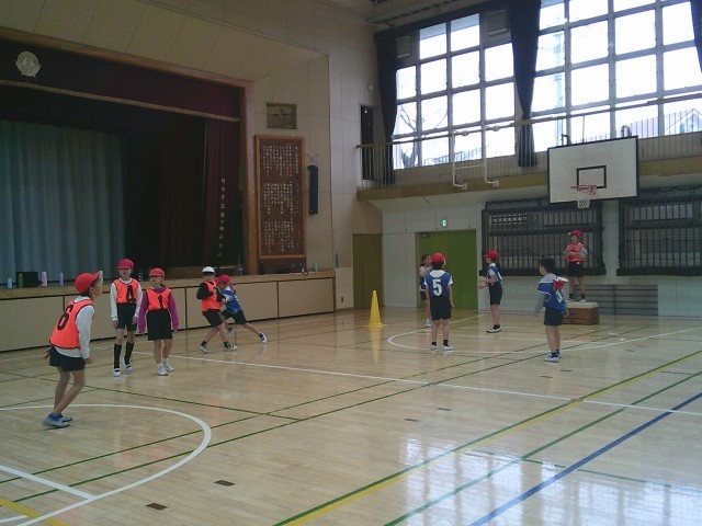19日(金)1時間目、4年1組は体育の時間でした。ポートボールのゲームをしていました。各チームともパスをつなぎながらシュートをめざしました。