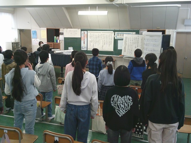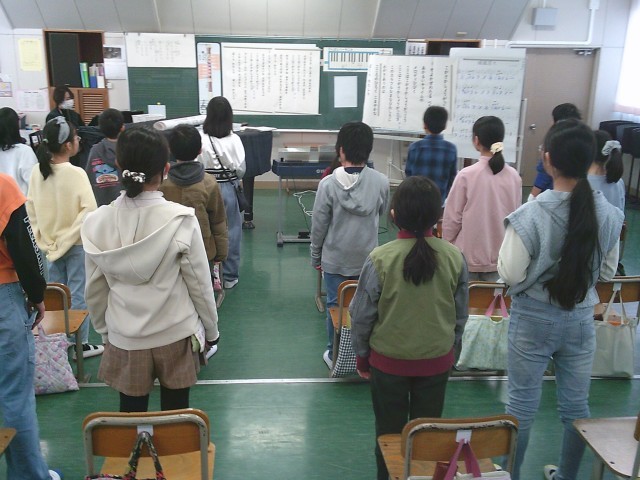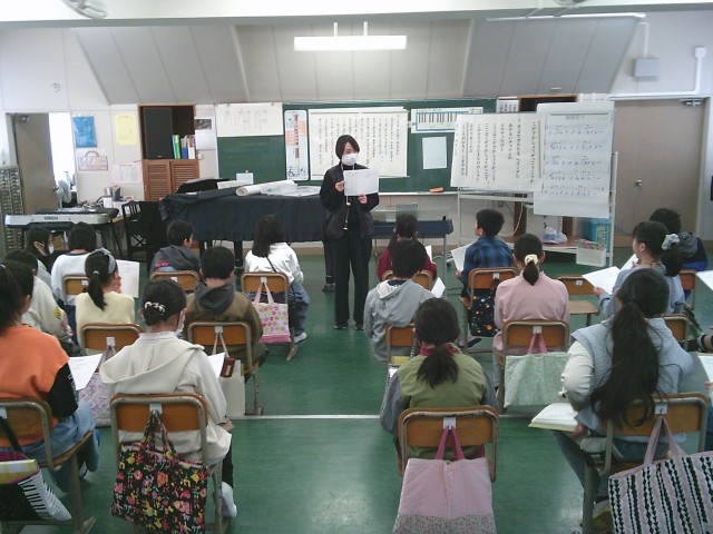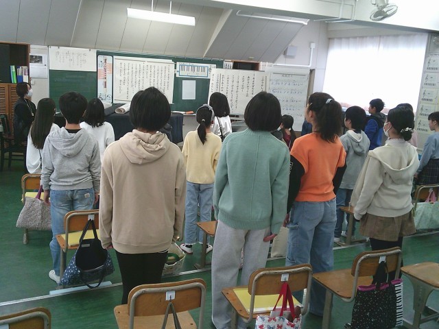 19日(金)4時間目、5年1組は音楽の時間でした。今月の歌「夢の世界を」を歌ってから、校歌の練習をしました。本校の校歌は二部合唱になっていて、始業式や終業式などでは5年生と6年生がアルトパートを歌っています。1年生から4年生までのソプラノパートとのバランスを取るために、子どもたちは背筋をのばして堂々と歌っていました。その姿はとても頼もしかったです。後半はリコーダーを出して「威風堂々」の練習をしました。この曲は卒業式で演奏することになっています。冬休みの宿題に「威風堂々のリコーダー練習」が出されました。