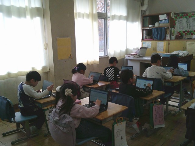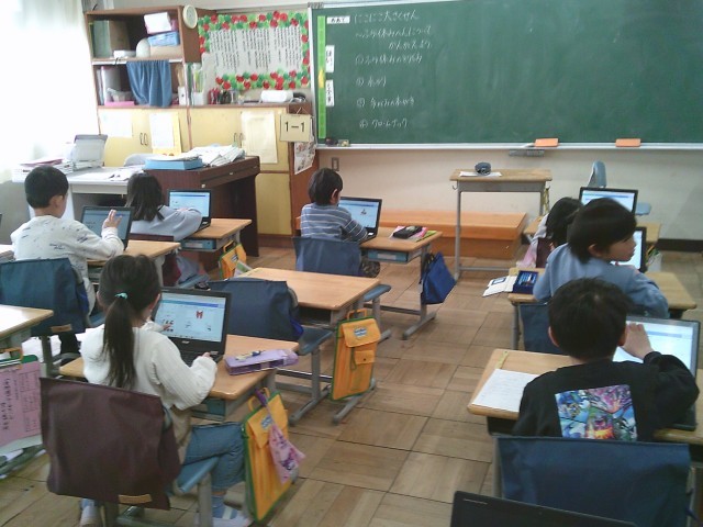22日(月)4時間目、1年1組は生活の時間でした。「にこにこ大さくせん」に取り組む中で、今回はタブレット端末を使って「カード作り」をしました。季節柄クリスマスの飾りを選ぶ人が多かったです。
