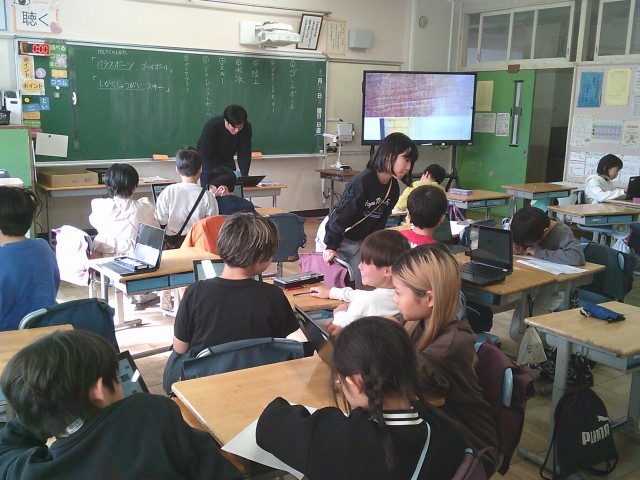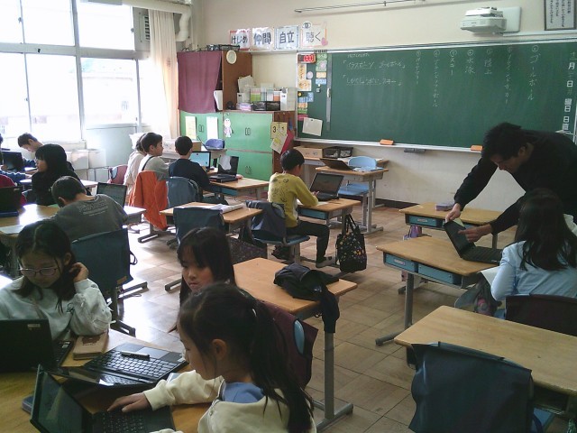 22日(月)4時間目、3年1組は総合的な学習の時間でした。タブレット端末を使って「パラスポーツ」について調べました。グループを作り、協力して調べていました。