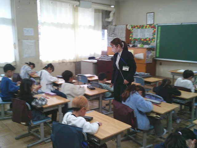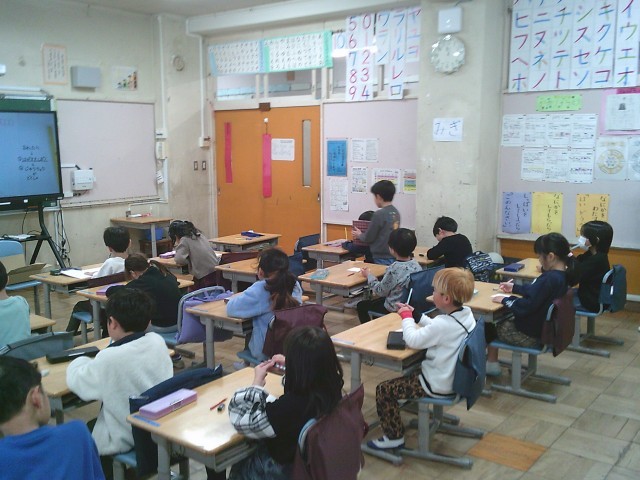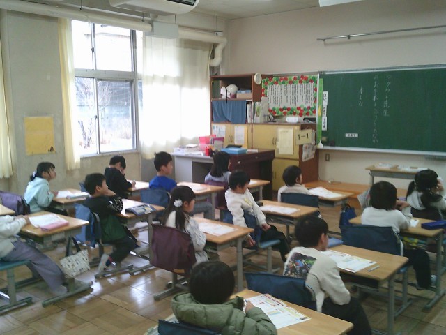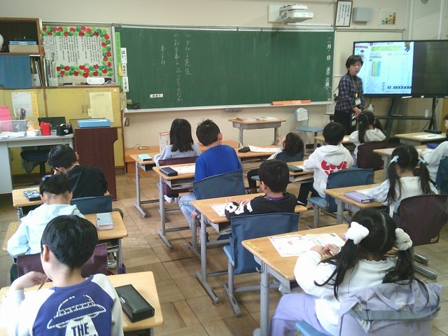 25日(木)2学期最後の授業の様子です。1年生は2学級とも「年賀状の書き方」を学習しました。郵便番号や住所を書く位置を確かめたり、「あけましておめでとうございます」と書いたりしていました。