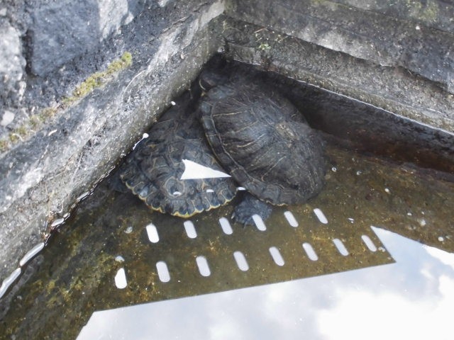 冬休み1日目です。子どもたちの声が聞こえない静かな朝の上校庭。学校の生き物たちは、隅っこ暮らしをしています。ハトは芝生の上で食事中。カメはただいま冬眠中。コイも隅で寄り添っています。学校は、明日から1月4日まで閉庁期間です。皆さん、よいお年を。