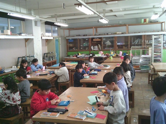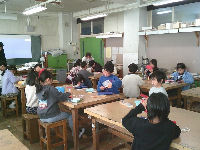 13日(火)1・2時間目、1年2組は図画工作の時間でした。図工室で「あそぼうよ パクパクさん」と題した工作に取り組みました。パクパクと口が動く仕組みを活かして作りました。顔を作るときは、特に目の描き方に工夫をしていました。
