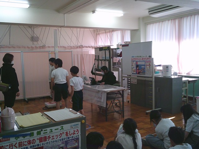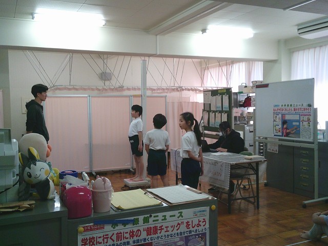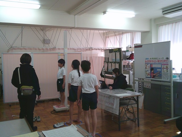13日(火)から身長と体重の計測が始まりました。本日は3年生と4年生です。保健室で実施しました。体育着の用意、髪型の配慮をよろしくお願いします。