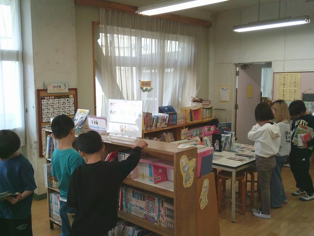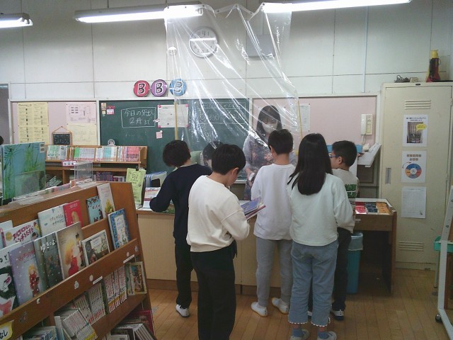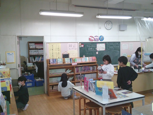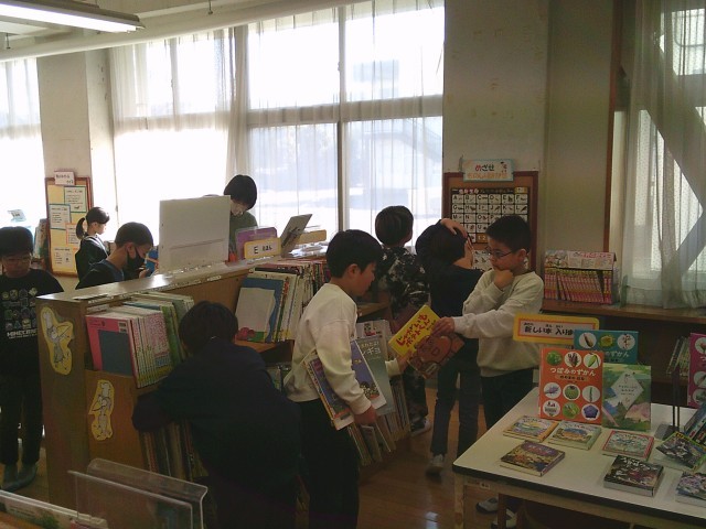 13日(火)3時間目、3年1組は図書の時間でした。最初に冬休み中に借りていた本の返却をしました。一人5冊あるので、子どもたちは順番に手続きをしました。その後、新たに借りる本を探したり、座って本を読んだりしました。