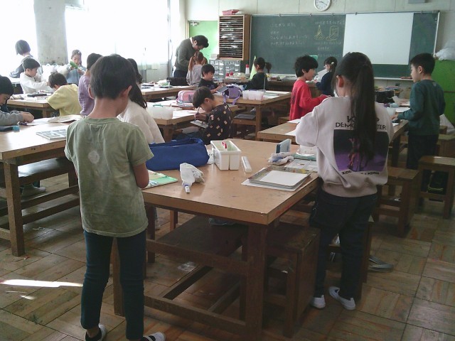 14日(水)1・2時間目、2年1組は図画工作の時間でした。「ふしぎな ぼうし」と題した作品作りが始まりました。今回は、「こんな帽子があったらいいな」というアイデアを考えました。実際にかぶることができる帽子の形を考えたり、帽子に付ける模様作りをしたりしました。