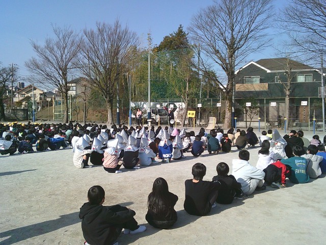 15日(木)、事前予告無しの避難訓練を実施しました。今回は、中休みに地震が発生したという想定です。子どもたちはそれぞれに校庭や図書室、教室で過ごしていましたが、訓練を告げる緊急放送が入ると遊びをやめて、その場にしゃがむことができました。今回は、副校長先生の話を聞いて訓練を終えました。