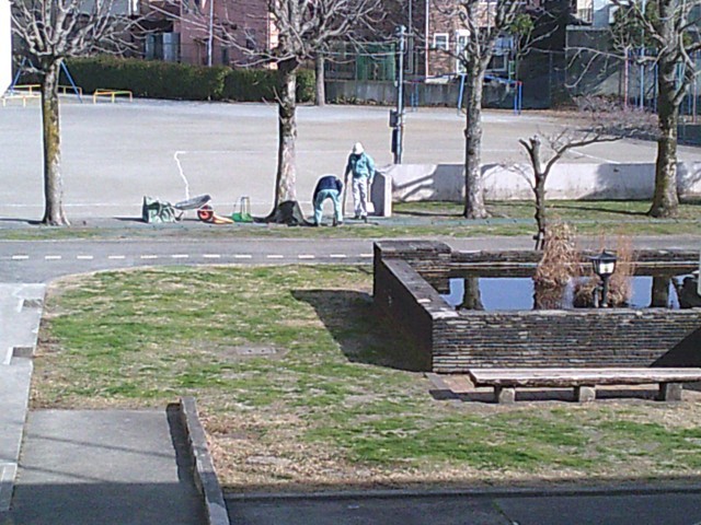 19日(月)午前中、芝生の養生を終えるため、杭やトラロープが取り除かれました。昨年の12月から始まった養生ですが、青々とした緑色をしています。子どもたちが約束を守ってくれたおかげです。