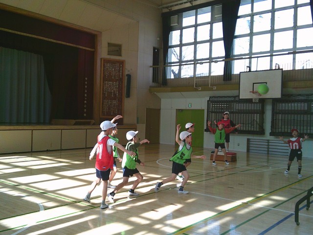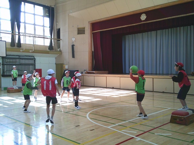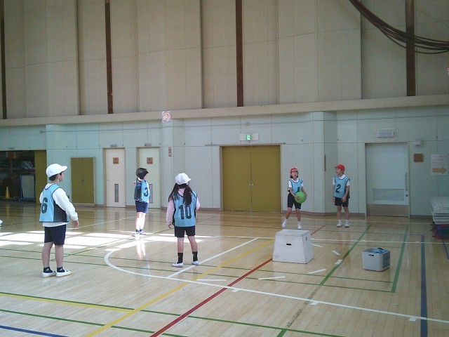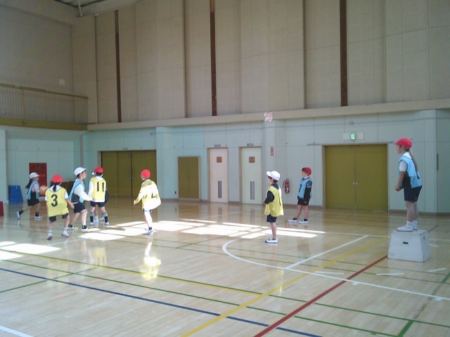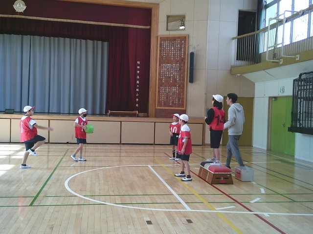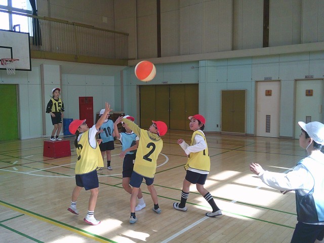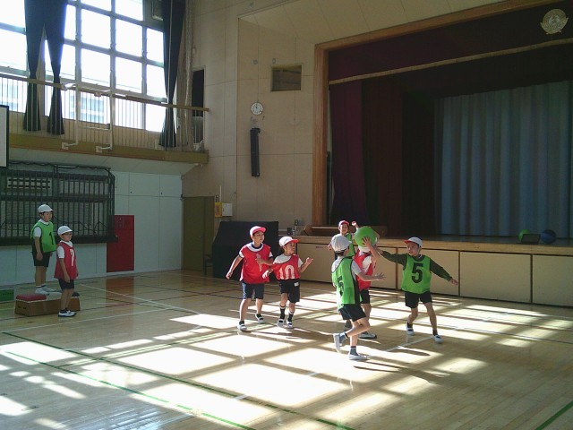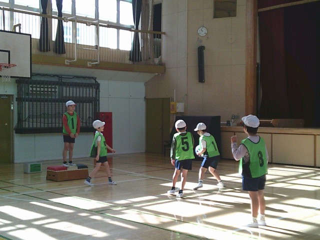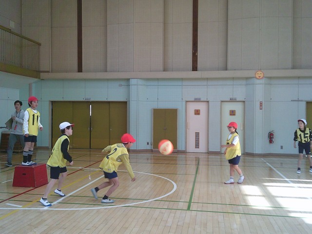 19日(月)3時間目、3年1組は体育の時間でした。「ポートボール」に取り組んでいます。前半は、グループごとに練習をしました。後半は、先生の笛の合図でゲームをしました。