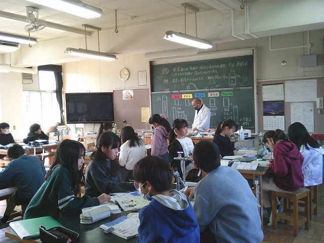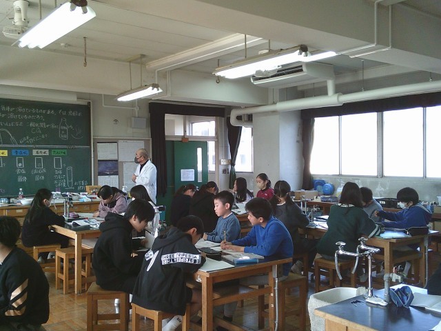 19日(月)3時間目、6年1組は理科の時間でした。「水溶液」の学習です。先週取り組んだ5種類の透明の液体を突き止める実験結果をまとめました。その中で「炭酸水にはどんなものが溶けているのか」という疑問が生じました。次回、この疑問を解決する実験をするそうです。