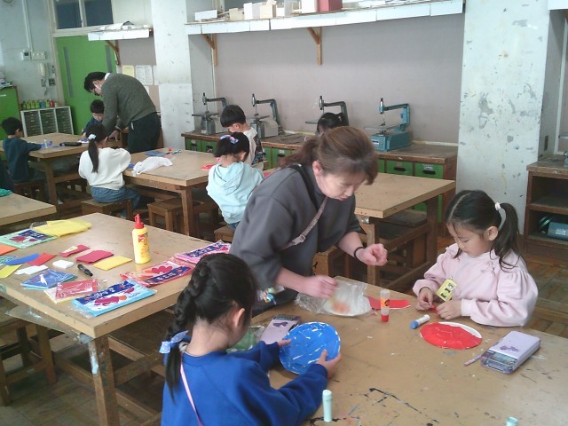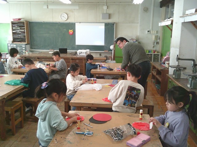20日(火)1・2時間目、1年1組は図画工作の時間でした。図工室で「おにの おめん」作りをしました。紙皿に折り紙をちぎって糊付けしていきました。赤鬼、青鬼、黄色鬼を選んだ人が多かったです。