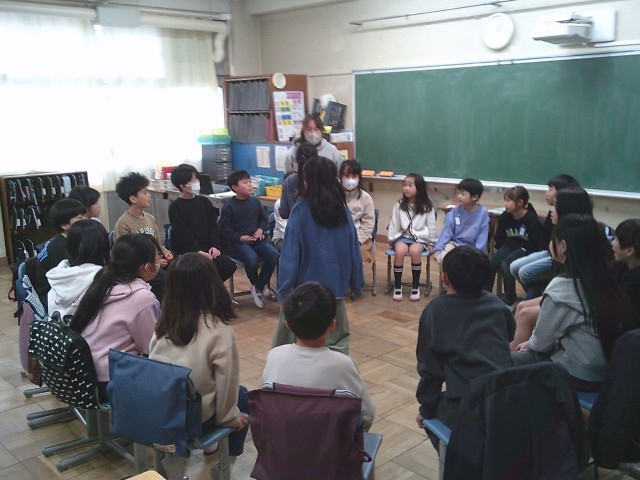 20日(火)昼休みを長めにとって、「たてわり班活動」を行いました。5年生が班のみんなを楽しませようと様々な企画を立てて臨みました。写真は全学年2組の様子です。6年生は一緒に遊びに参加したり、机やいすの移動を手伝ったりしていました。5年生をそっと支えている姿がすてきでした。