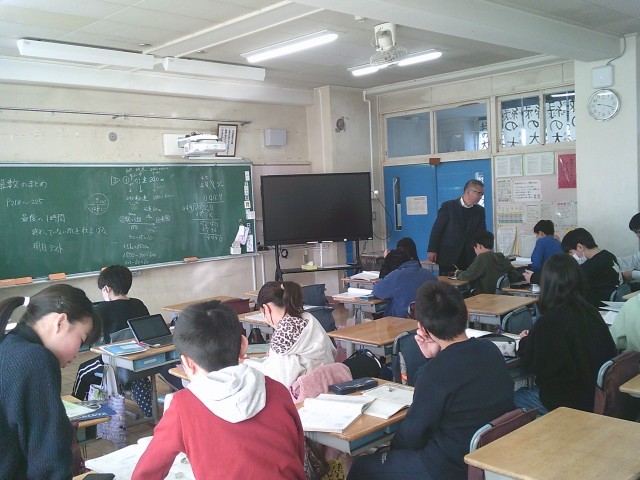 26日(月)1時間目、6年生は算数の時間でした。3学期に入ってからずっと「算数のまとめ」に取り組んできました。今回がその最終回で、明日はテストをするそうです。子どもたちは分からないところを聞いたり、考え方を教えたりして明日に備えていました。