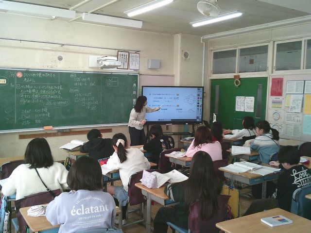 27日(火)1時間目、5年生は算数の時間でした。「割合」の学習が始まり2回目です。今回は、「比べられる量の求め方を考えよう」をめあてに取り組みました。「4マス関係表」が考えるための手だてになっています。