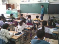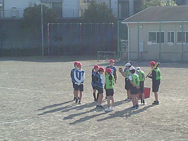 27日(火)1時間目、6年1組は体育の時間でした。「ティーボール」に取り組んでいます。ボールは柔らかいので素手で扱いますが、一部大谷選手からいただいたグローブも使っています。先生の笛の合図でゲームが終わり、相手チームと挨拶をしてから集合しました。子どもたちは、「次回がティーボールの最終回」という話を聞きました。