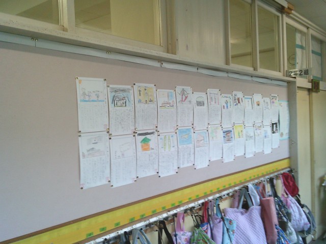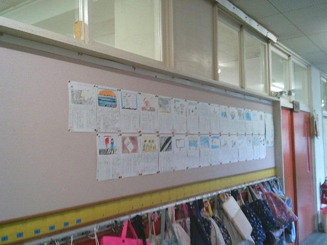 2年生の廊下には、国語の時間に取り組んだ「冬がいっぱい」が飾られました。子どもたちが見付けた「冬を感じる言葉」や「冬の思い出」を絵と文章で紹介しています。