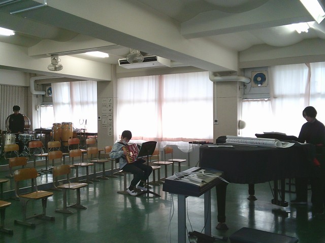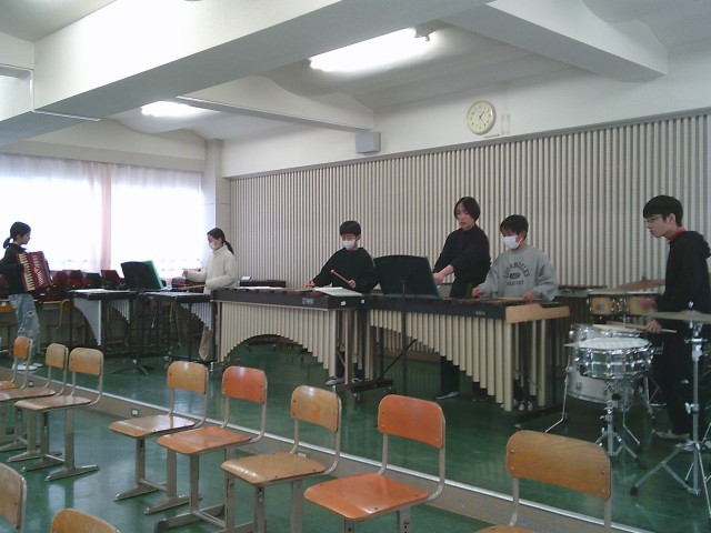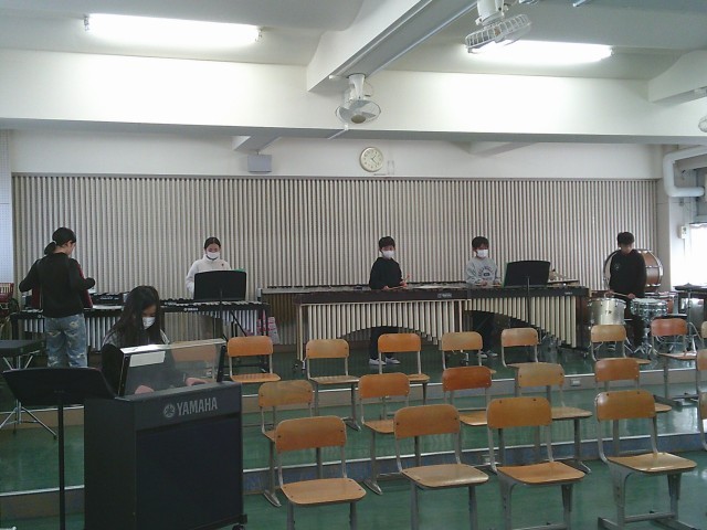 29日(木)昼休みの様子です。晴天が続き、子どもたちは校庭に出て元気に遊んでいます。音楽室では6年生が合奏の練習をしていました。自主的に参加している人もいます。