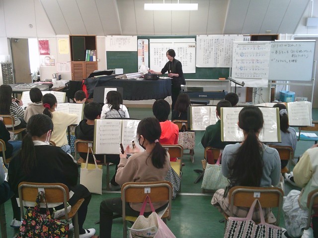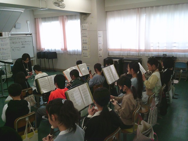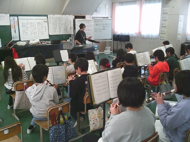29日(木)6時間目、5年1組は音楽の時間でした。今月の歌「ふるさと」を歌うのも最後です。その後、リコーダーを出して「威風堂々」と「さようなら」の練習を始めました。この2曲は卒業式の入場と退場の際に演奏します。今回は、「さようなら」の中に出てくる「シのフラット」の指使いを習いました。