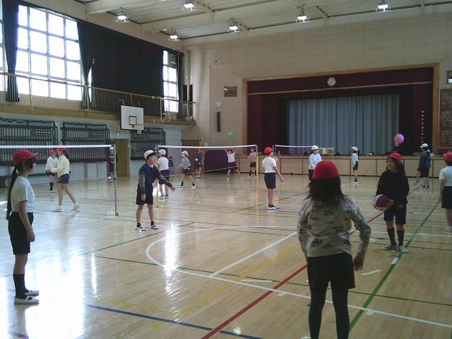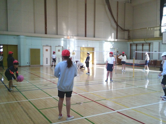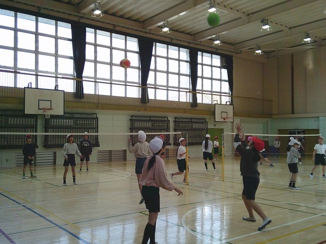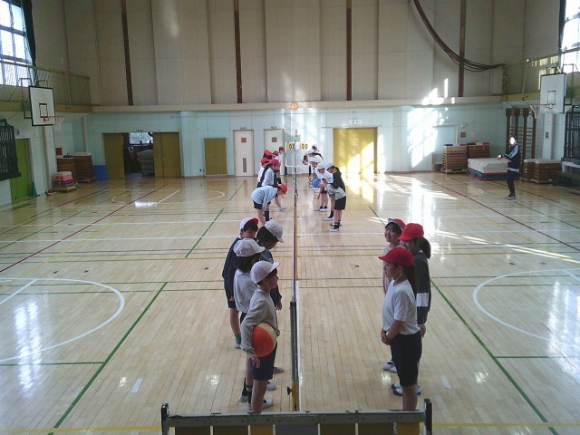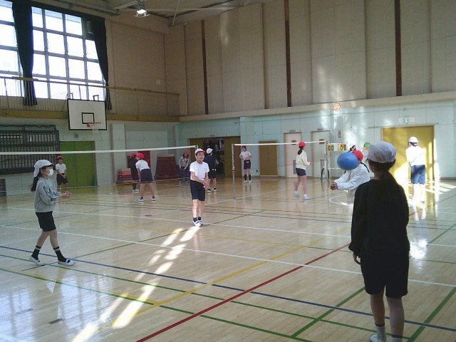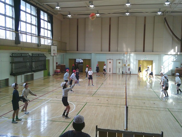 29日(木)6時間目、5年2組は体育の時間でした。「ソフトバレーボール」の学習です。準備運動をしてから、グループごとに練習をしました。その後、ネット越しに挨拶をしてから、ゲームを始めました。アタックをする姿もあり、上達していることが分かりました。
