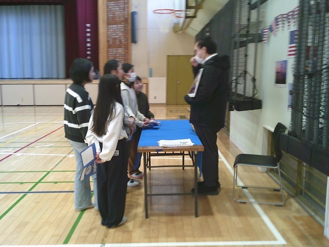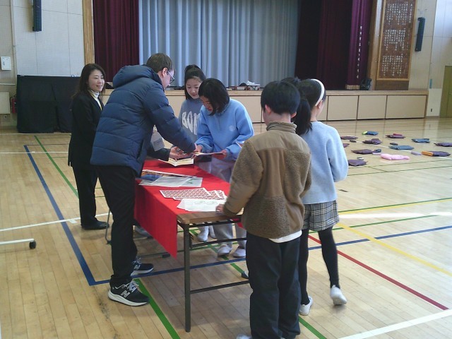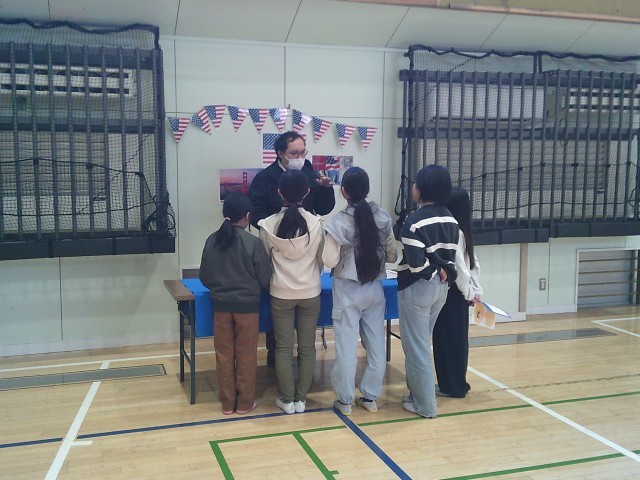 30日(金)4時間目、5年1組は「イングリッシュ・キャラバン」に参加しました。今回はワールド・ツアーに出かけるという設定のため、5年生と6年生は「パスポート」をもらって、4つの国を順に周りました。その国を出国する際、パスポートにシールを貼ってもらいました。