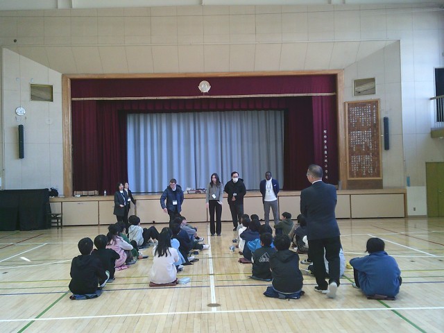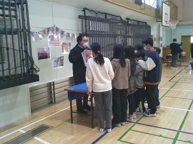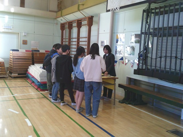 30日(金)6時間目、6年2組は体育館での「ワールド・ツアー」に参加しました。今回は5名のALTが来校しました。入国すると国旗、地図上の位置、有名な建物、食べ物、人気のスポーツなどその国の紹介を英語で聞きました。子どもたちは頷いたり、笑顔を見せたりして楽しみました。4年1組は1時間目、4年2組は2時間目、6年1組は5時間目に学習をしました。