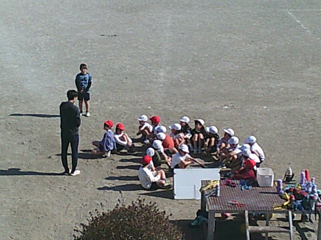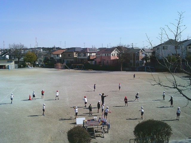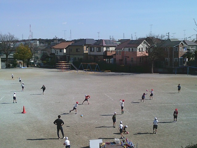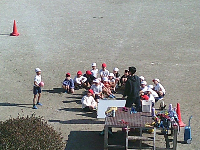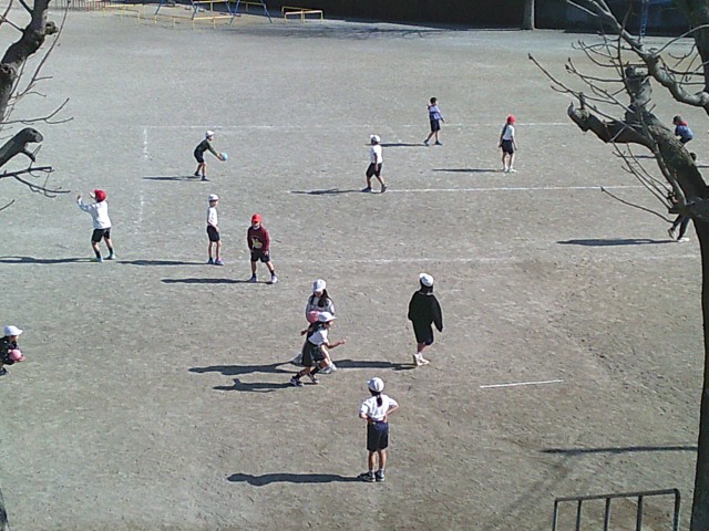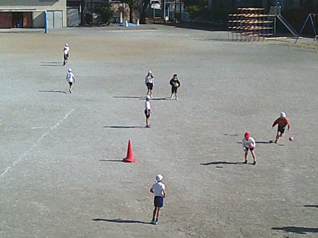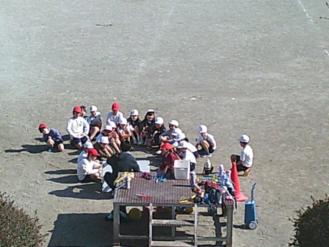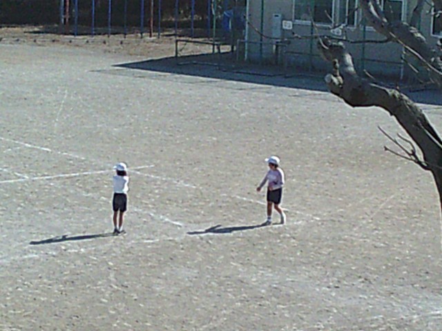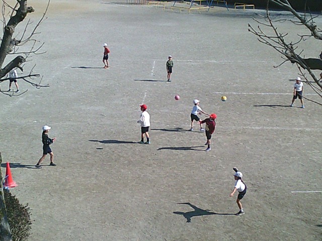 30日(金)3時間目、3年1組は体育の時間でした。短なわ跳びの練習、長なわ跳びの練習をしてから、「ボール投げ運動」をしました。先生の話を聞いてから、2人組か3人組を作ってボール投げをしました。ボールを受けるときの手の形の合言葉は「おにぎり」でした。