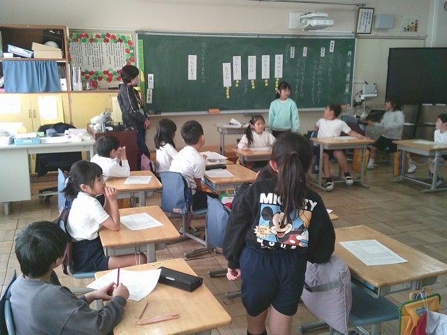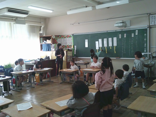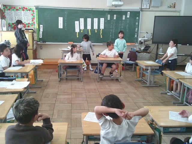 30日(金)4時間目、1年1組は学級活動の時間でした。「学級会」を開いていました。今回話し合ったことは、「6年生にありがとうの気持ちを伝えよう」です。「発言するときは必ず手を挙げよう」をめあてに、子どもたちは自分がよいと思う気持ちを伝える方法とその理由を述べていました。